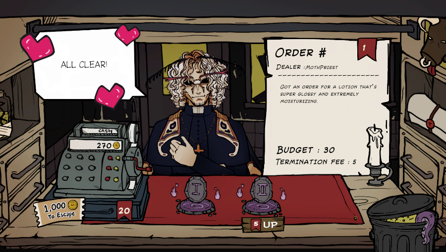 You play as a demon lotion alchemist, a mysterious craftsman who brews magical lotions for dealers from the underworld. Mix ingredients, follow requests carefully, and earn your rewards — but fail, and you’ll pay the price.